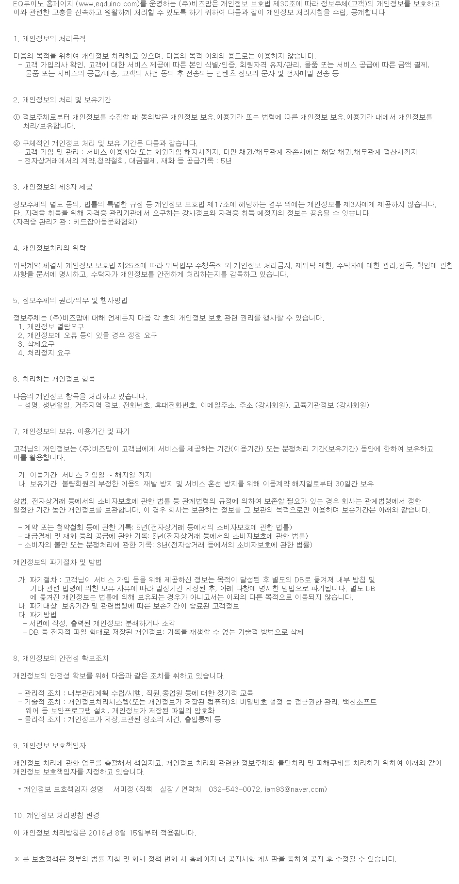 EQµÎÀ̳ëÀÇ °³ÀÎÁ¤º¸º¸È£Á¤Ã¥À» ¾Ë·Áµå¸³´Ï´Ù.