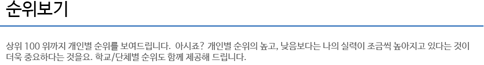 - °³Àκ° ÃÖ°íÁ¡¼ö¸¦ ±âÁØÀ¸·Î Àüü ¼øÀ§ Áß 100À§±îÁö¸¸ º¸À̸ç, ¹®Á¦¸¦ Ǭ ÀÏÀÚ°¡ 1³âÀÌ °æ°úµÈ ÇлýÀÇ Á¡¼ö´Â ¼øÀ§¿¡¼ Á¦¿ÜµË´Ï´Ù.